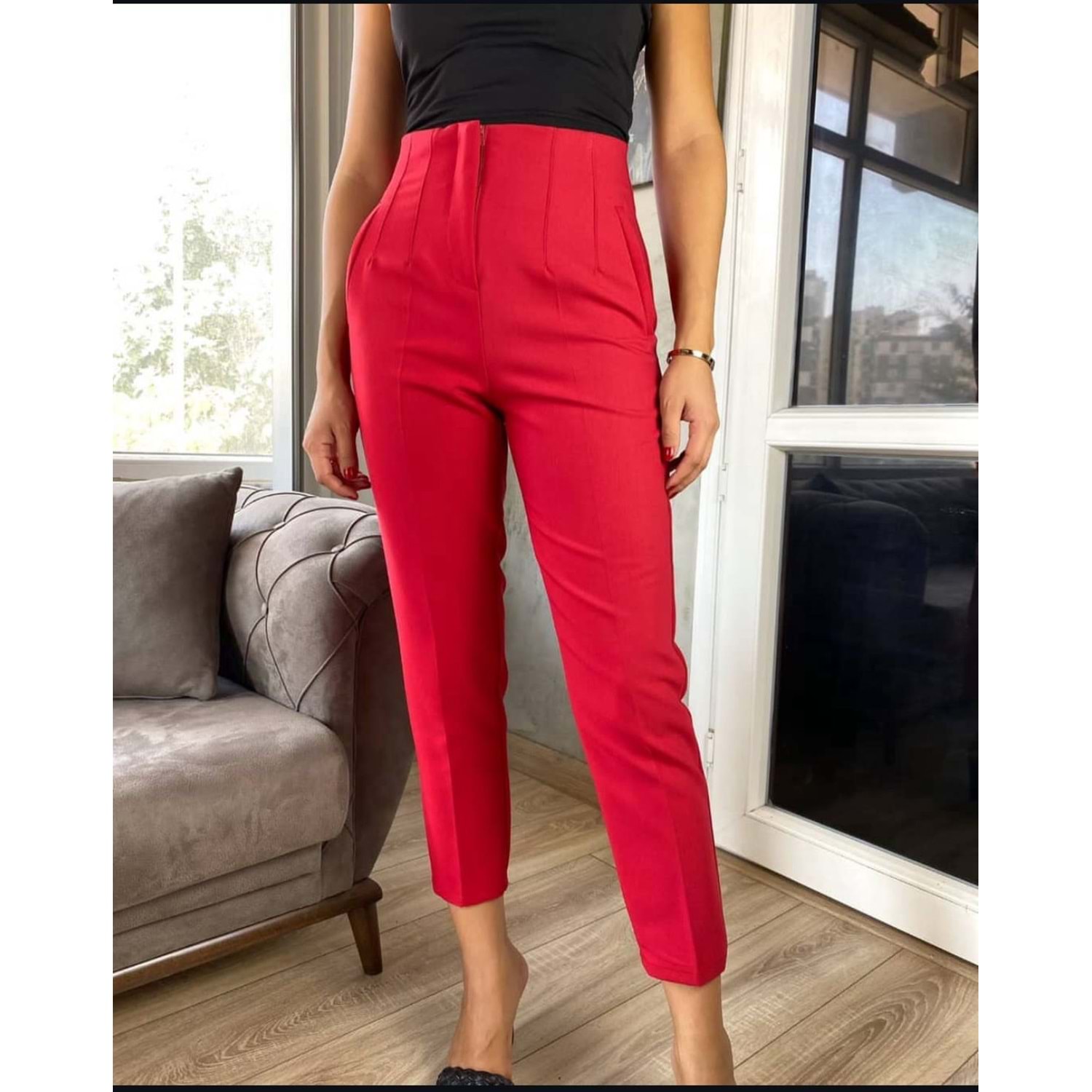 Kumaş Pantolon - Zümra Butik - KIRMIZI - 50
